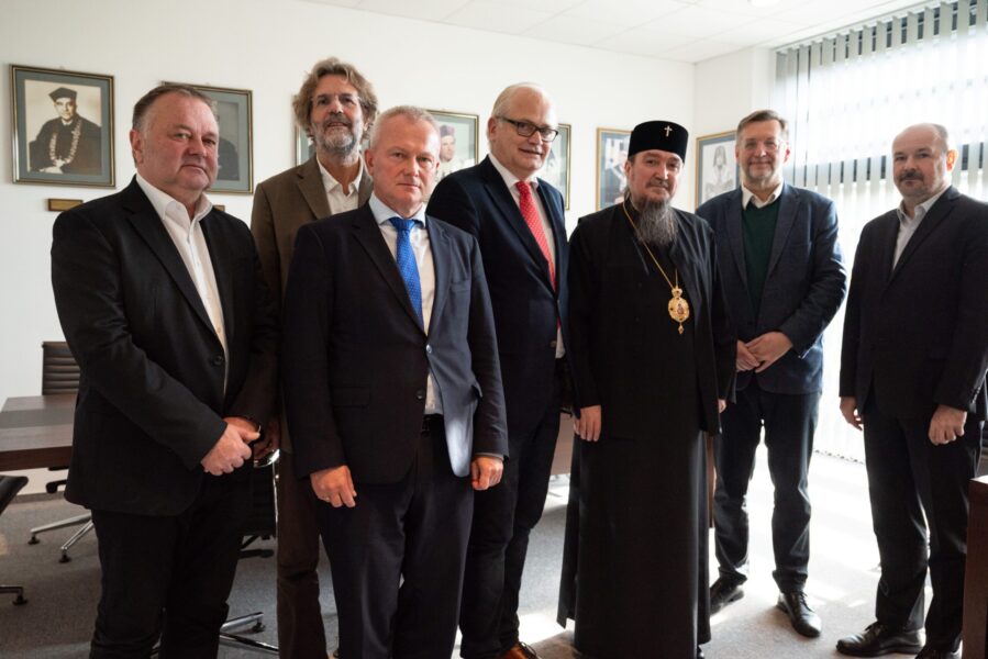W dniu 23 października 2025 gościliśmy prof. dr hab. Hermuta Löhra (Evangelisch-Theologische Fakultät der Universität Bonn), dziekana Wydziału, z którym ChAT łączy długoletnia współpraca na podstawie umowy o partnerstwie, oraz badacza Nowego Testamentu i antycznego judaizmu. Prof. Hermut Löhr spotkał się JM Rektorem abp. prof. dr. hab. Jerzym Pańkowskim i władzami uczelni. W trakcie spotkania podsumowano dotychczasową współpracę i dyskutowano o jej przyszłych perspektywach. Obie strony oceniły współpracę jako bardzo owocną i wartą kontynuowania. Prof. Hermut Löhr wziął również udział w spotkaniu z wykładowcami Wydziału Teologicznego ChAT połączonego ze wspólnym posiłkiem, podczas którego rozmawiano o dalszej wymianie naukowej.